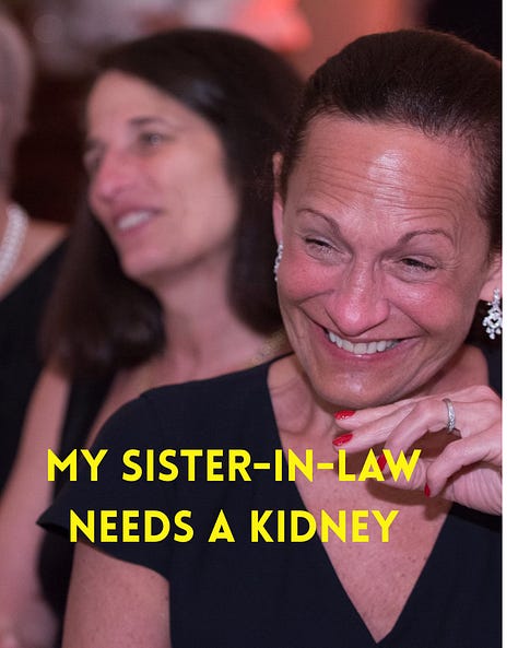 Cindy and my sister Ellen have been together for 28 years. Many of you know Ellen from Friends School in Roland Park, where she taught middle school science for over 35 years. I've known Cindy since I was only 34 years old! She is a sister to me and another daughter to my mother, Bunny. We need to find a donor. Can you help?